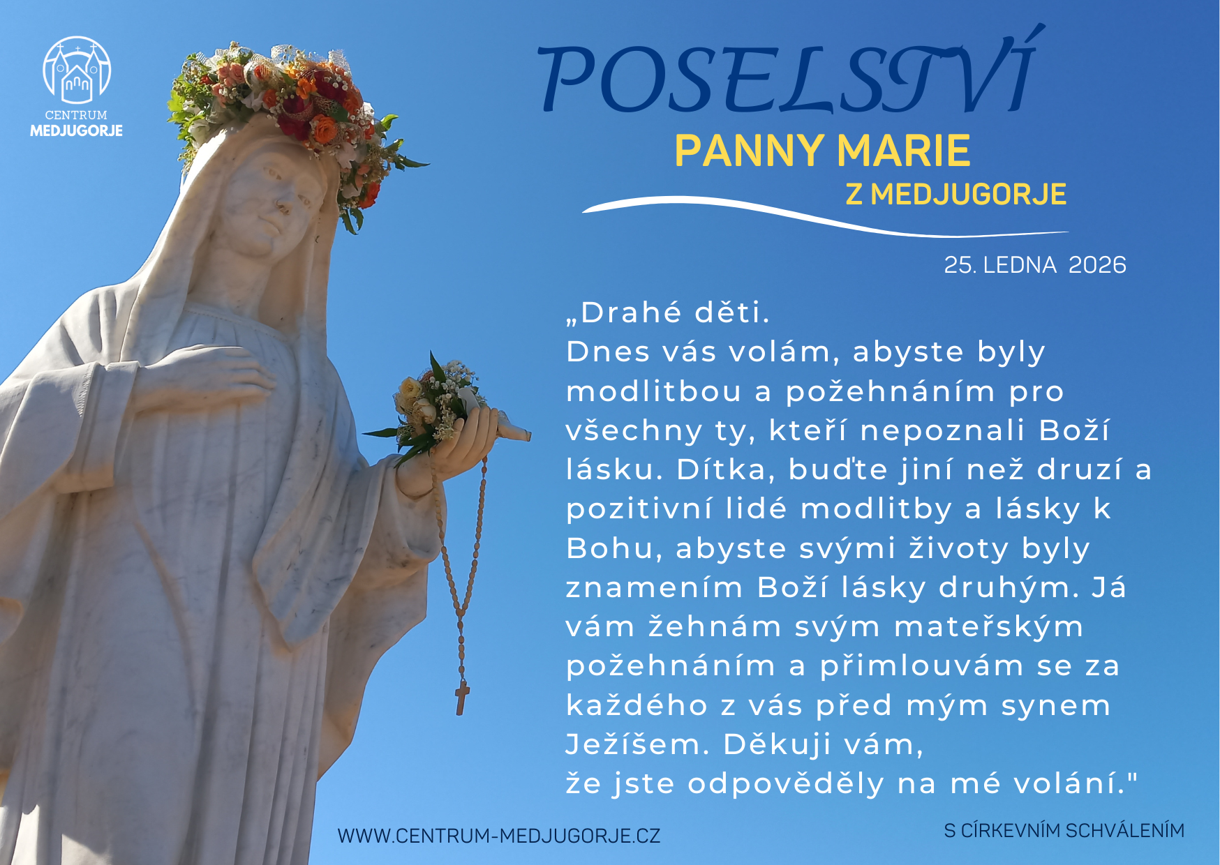Nové poselství Panny Marie z Medjugorje z 25.1.2026 prostřednictvím vizionářky Marije Pavlovič-Lunetti: